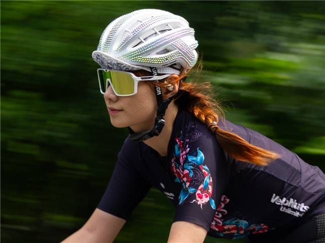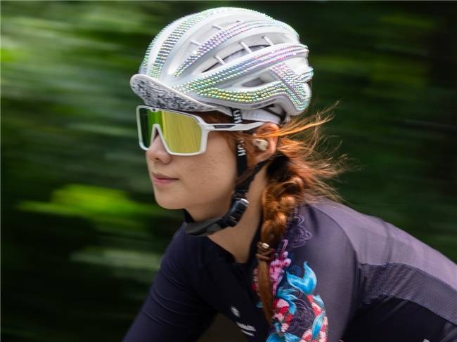 下图是开启佳能EOS R1摇摄辅助功能进行拍摄的运动员骑行的照片。拍摄时快速移动相机追踪运动员,不仅得到了动感十足的照片,放大查看细节,人物面部、头盔的细节清晰可见。足见该功能对于使用摇摄拍摄运动照片时的帮助是非常大的,可以帮助摄影师拍摄出效果更好的赛车这类高速运动题材摄影作品。