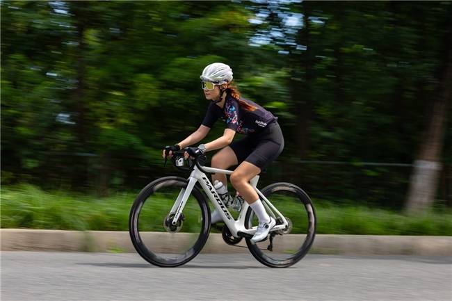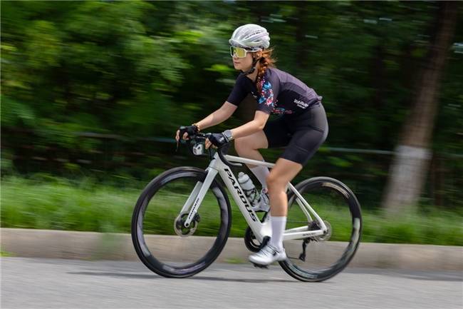 下面这张照片,在拍摄时关闭了EOS R1的摇摄辅助功能,通过M档光圈以及快门速度的组合,得到了极具动感的骑行画面。由于在摇摄过程中需要快速移动相机追踪骑行的运动员,所以放大查看照片发现,运动员主体依然有些模糊,细节并不清晰。