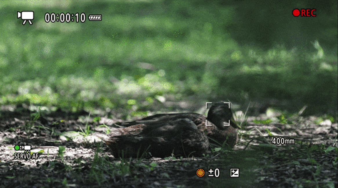 上面的GIF图是我们使用升级了1.1.2版本固件后的佳能EOS R1搭配RF100-500mm F4.5-7.1 L IS USM镜头拍摄远处栖息的野鸭,野鸭羽毛的颜色与地面十分接近。拍摄时,由于距离较远,佳能EOS R1可以轻松识别到栖息的野鸭,并且即使镜头前因为行人的经过出现了遮挡,焦点也始终锁定在野鸭的身体和头部,带来了更好的视频下对焦体验。